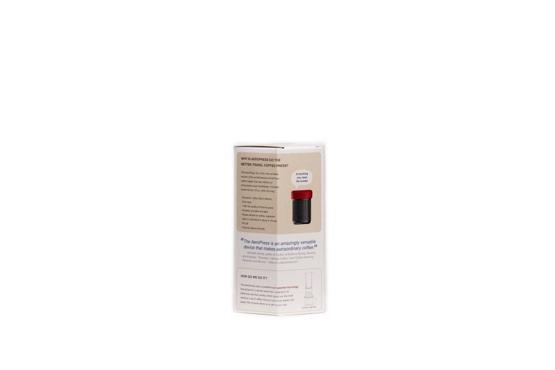 The AeroPress Go has all the features we love about the original AeroPress and more. It offers immersion brewing that yields full bodied, sweet tasting coffee but it's more portable and travel friendly. It comes with a travel mug that doubles as a compact carry case.